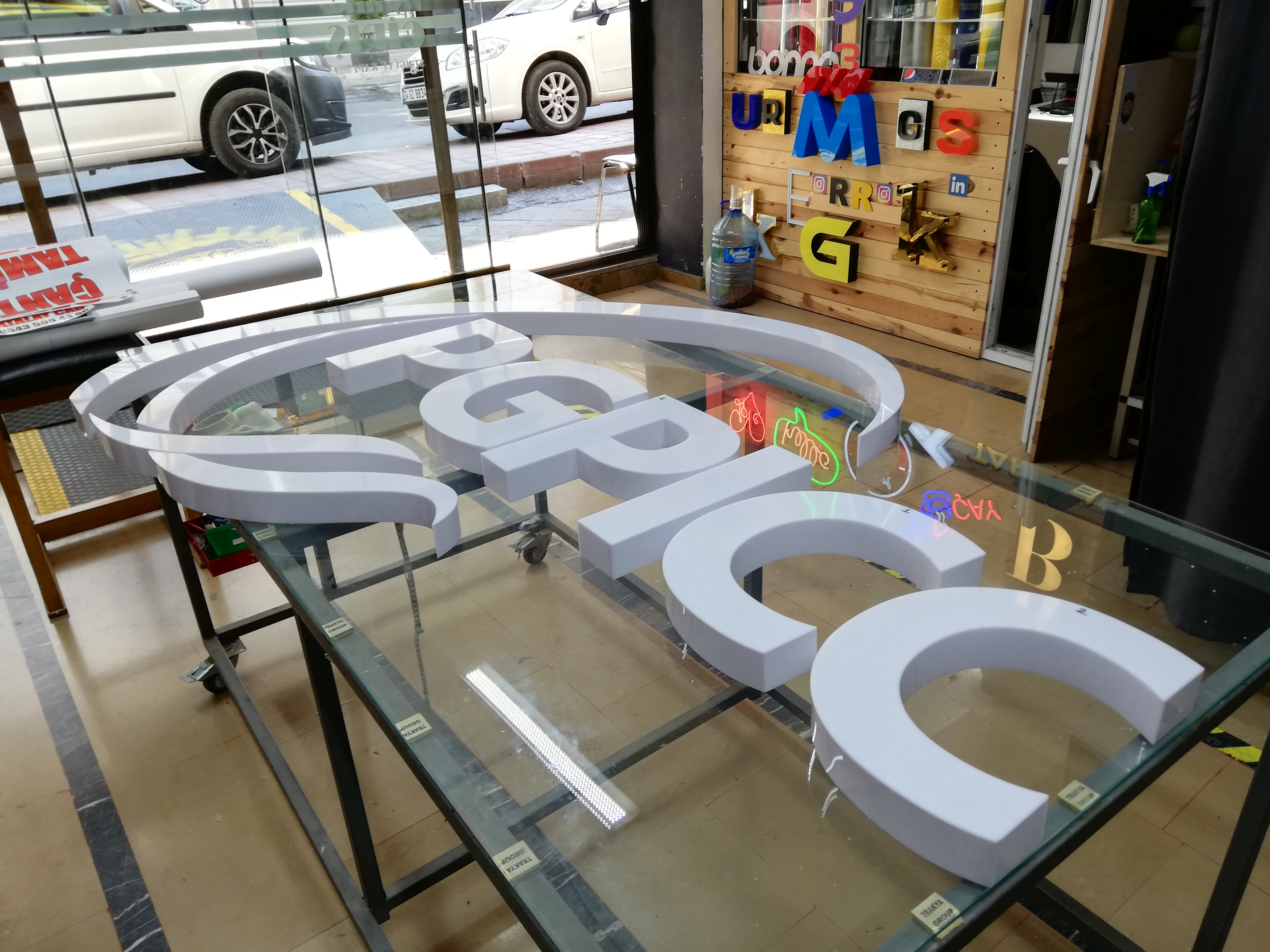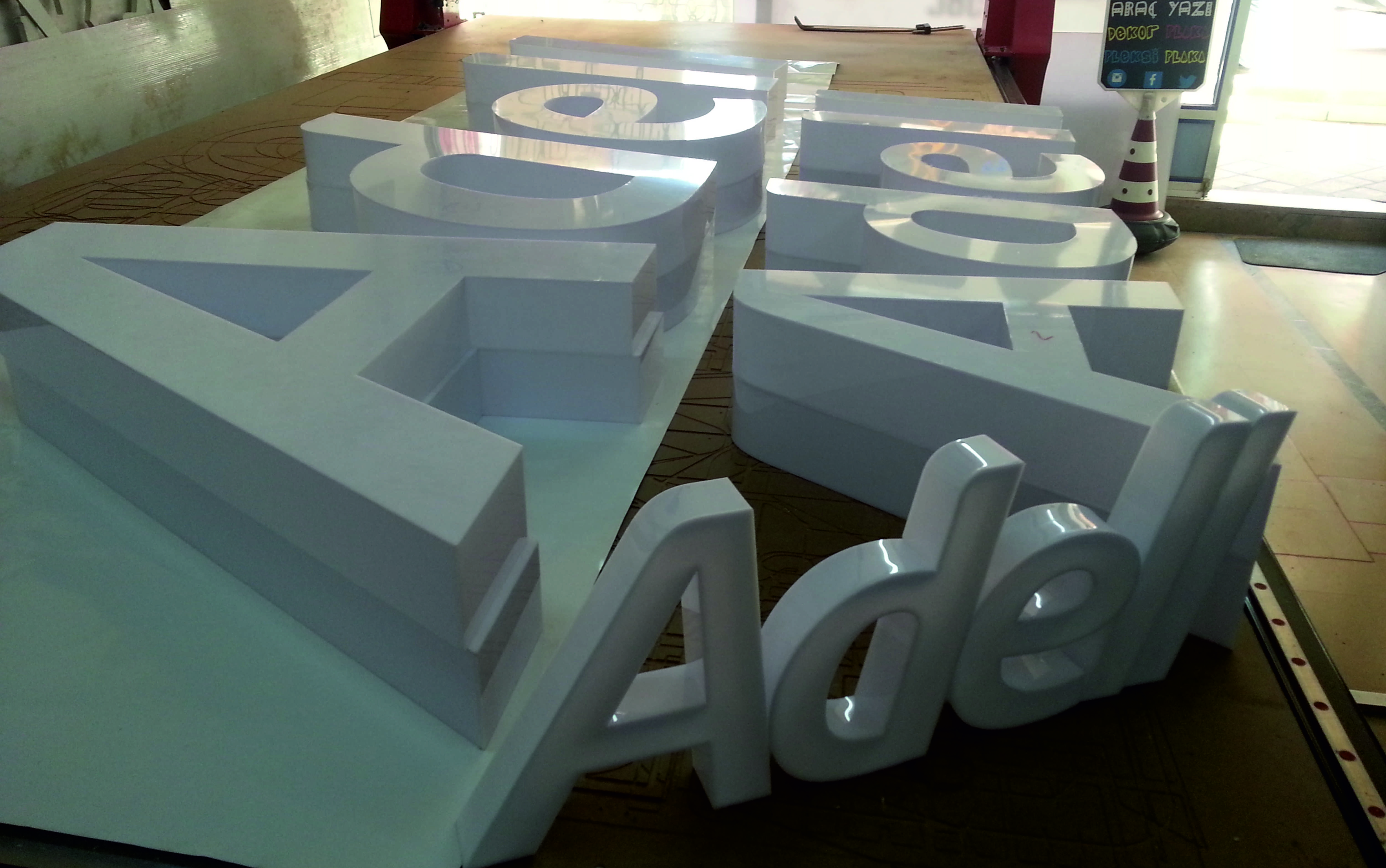 Tamamı el işçiliğine dayalı Pleksi ( Akrilik ) şekillendirme yolu ile üretilen harflerdir.